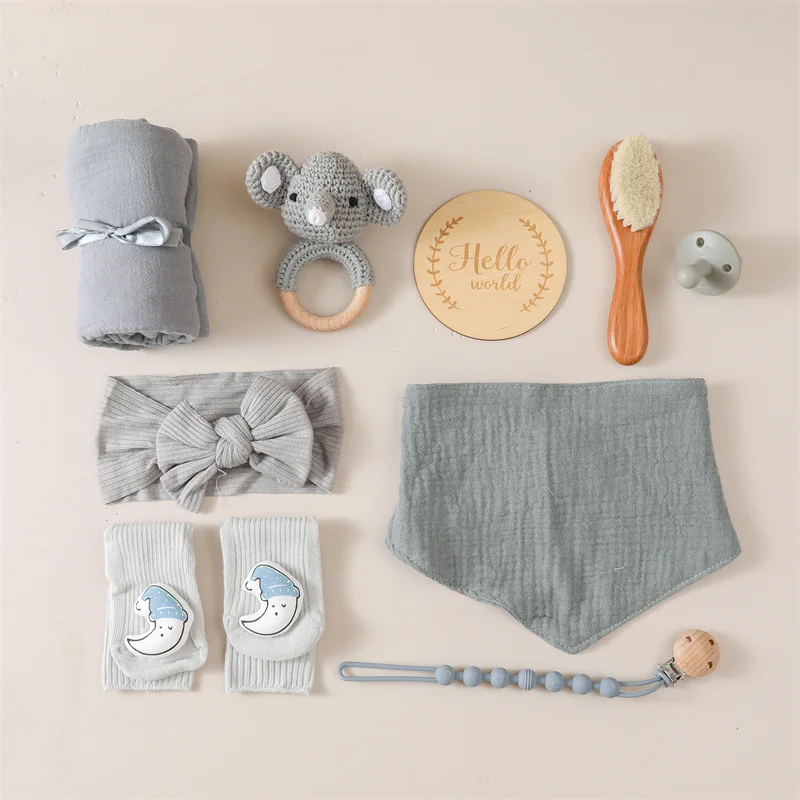 Baby Bad Set Decke Holz bürste Neugeborenen Meilensteine Monats karten Bades pielzeug für Babys Säugling Foto Requisiten Geburts geschenke Box