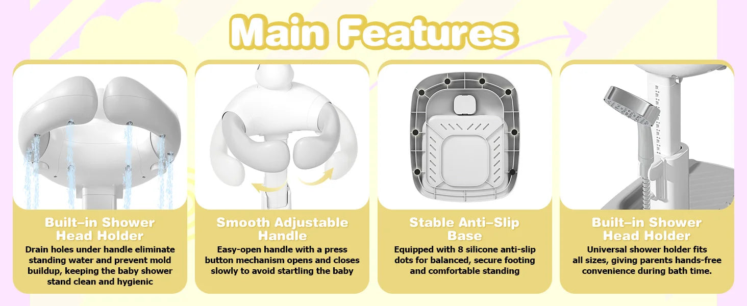 Baby-Bademaker, Baby-Duschständer, Baby-Duschständer, Baby-Badeständer mit Standunterstützung, tragbar und freie Mutterhände